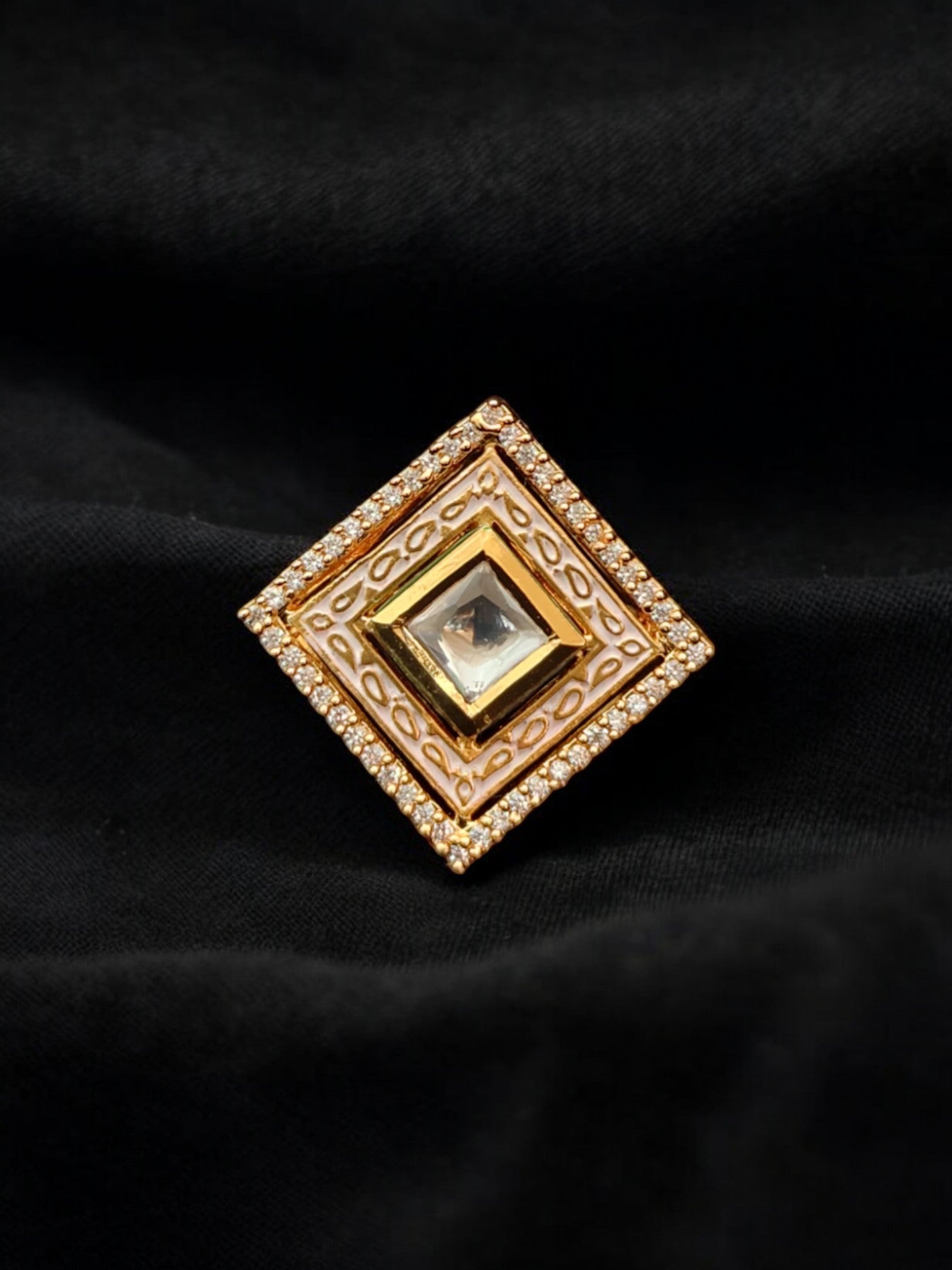 Base Metal: Mix Metal (Copper, Brass & Silver) Size : Adjustable Ring Weight : 6.8 gms Stone Setting: Kundan Stone Finish: Gold Sales Package: Rings Occasions: Weddings, festivals, traditional events. Care Instructions: Wipe with a soft cloth after use, store in a jewellery box, and avoid direct contact with water and perfumes. "The product image may differ slightly from the actual item."