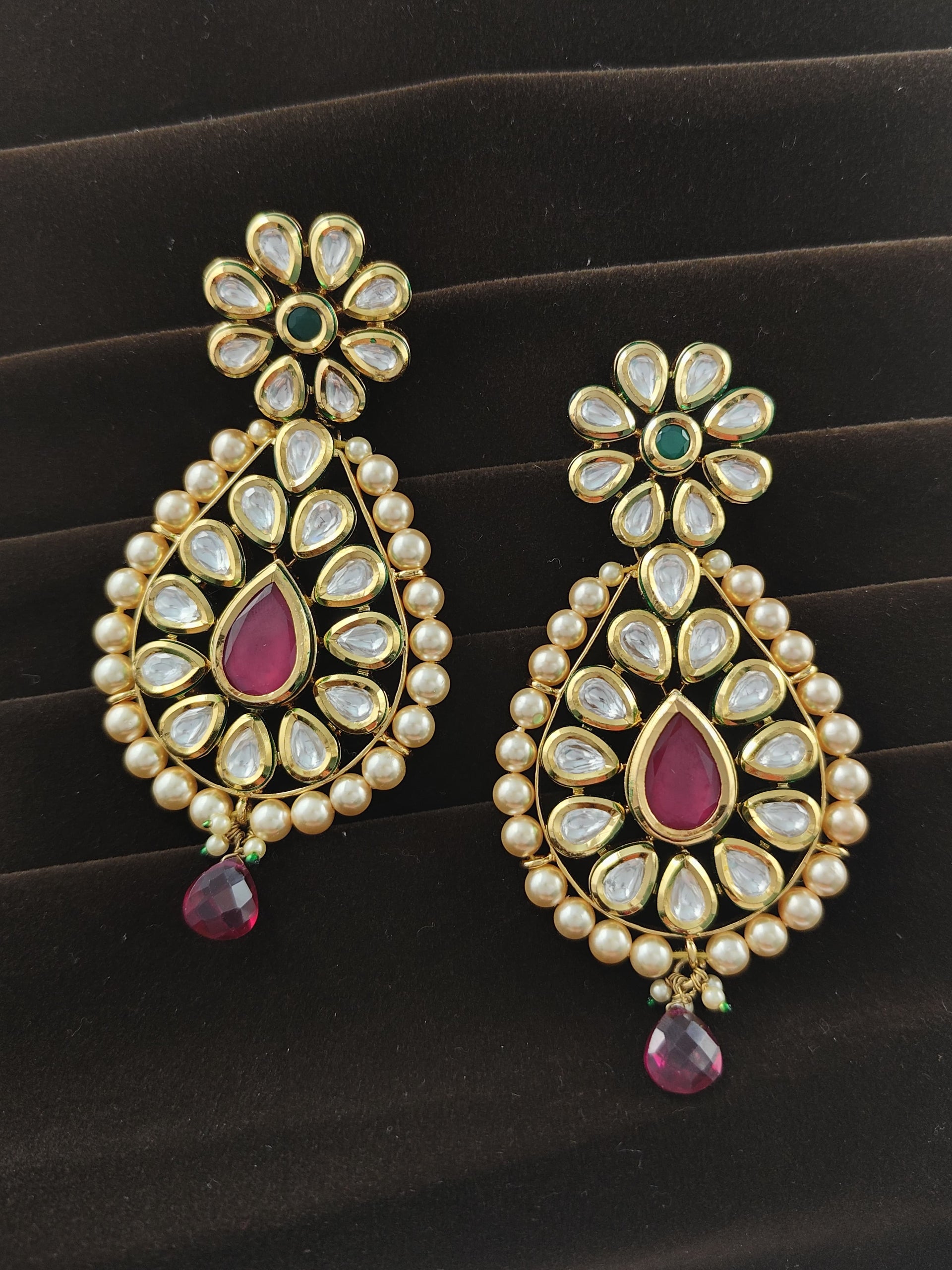 "Base Metal: Mix Metal (Copper, Brass & Silver) Size : 8 x 4.5 cm Weight : 35 gms Stone Setting: Kundan Plating: Gold plated Finish: Gold Lock : Push backs Occasions: Weddings, festivals, traditional events. Care Instructions: Wipe with a soft cloth after use, store in a jewellery box, and avoid direct contact with water and perfumes. ""The product image may differ slightly from the actual item."""